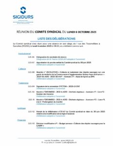 Liste délibérations du Comité syndical 06.10.25